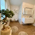 Los cuartos de baño también disponen de bidé, un inodoro separado y ducha. Hay secadores de pelo, toallas de baño y zapatillas para la comodidad de los huéspedes.